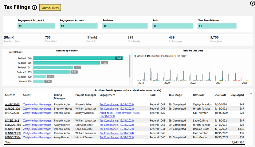 - Track the entire lifecycle of tax engagements in real time.